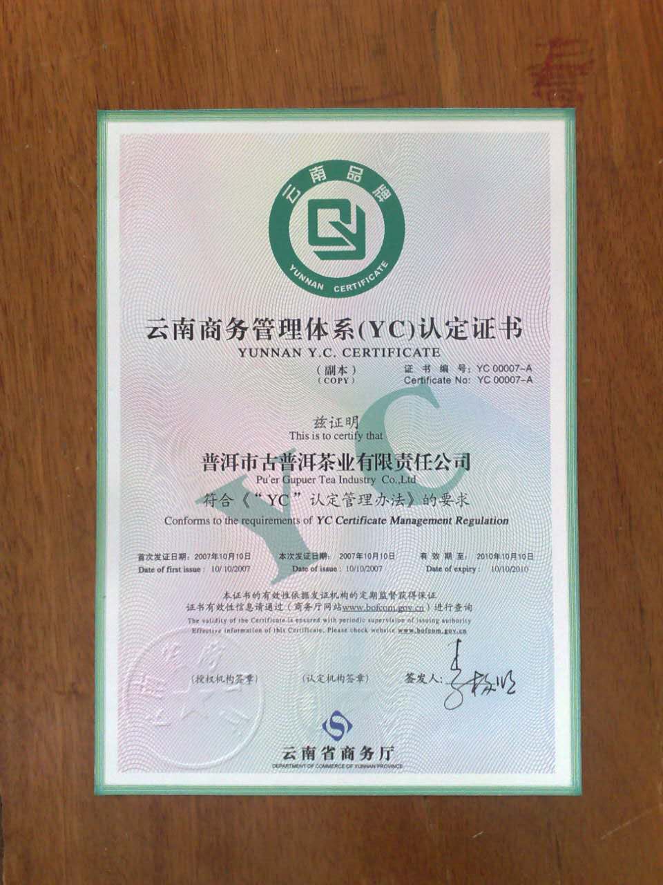 公司成立至今,在普洱、西雙版納、臨滄三大茶區中擁有生態茶園6000多畝,古樹大葉種茶3000多棵。為完善公司管理需要,2006年12月通過茶葉食品生產許可證A級認證;2007年10月首次取得云南品牌YC認證;2008年4月通過出口食品衛生注冊認證;2010年獲得云南省著名商標;多年來公司產品榮獲許多榮譽和多項資格認證,其中最引人注目的是,公司生產的宮延普洱茶榮獲“2002年廣州茶博覽交易會”暨第二屆(秋季)優質茶評比大賽的“普洱茶王”稱號,并以100克16萬的天價拍賣成交。創造了中國普洱茶歷史上的第一個“茶王”稱號。同時也給云南省各族人民帶來了一張響亮了名片。